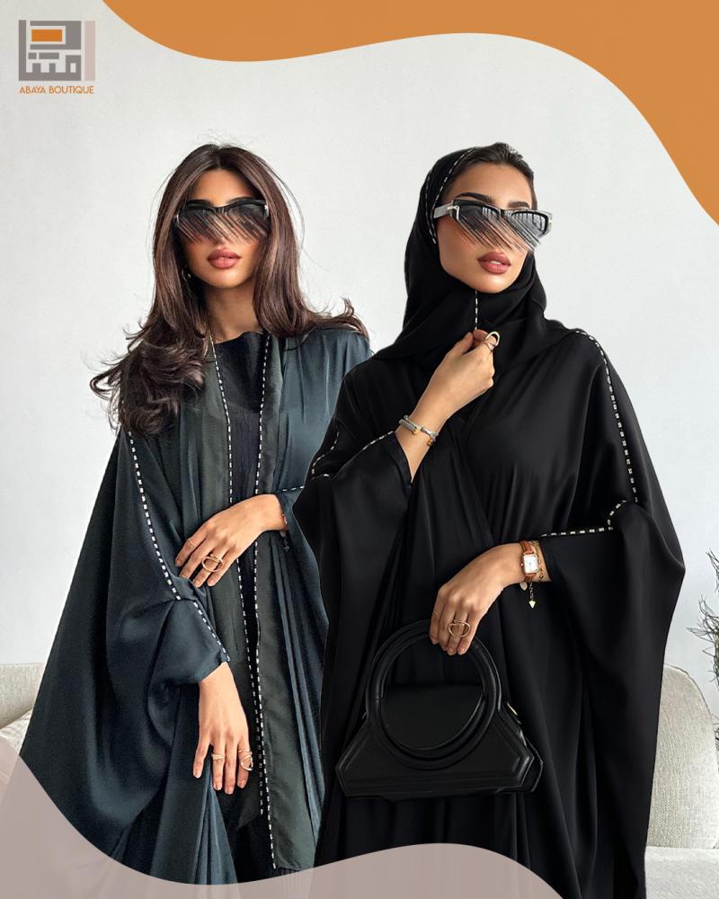 نفس البريق الراقي بتفصيل بشت أنثوي يبرز جمال اللون الأخضر العميق،