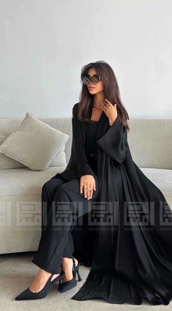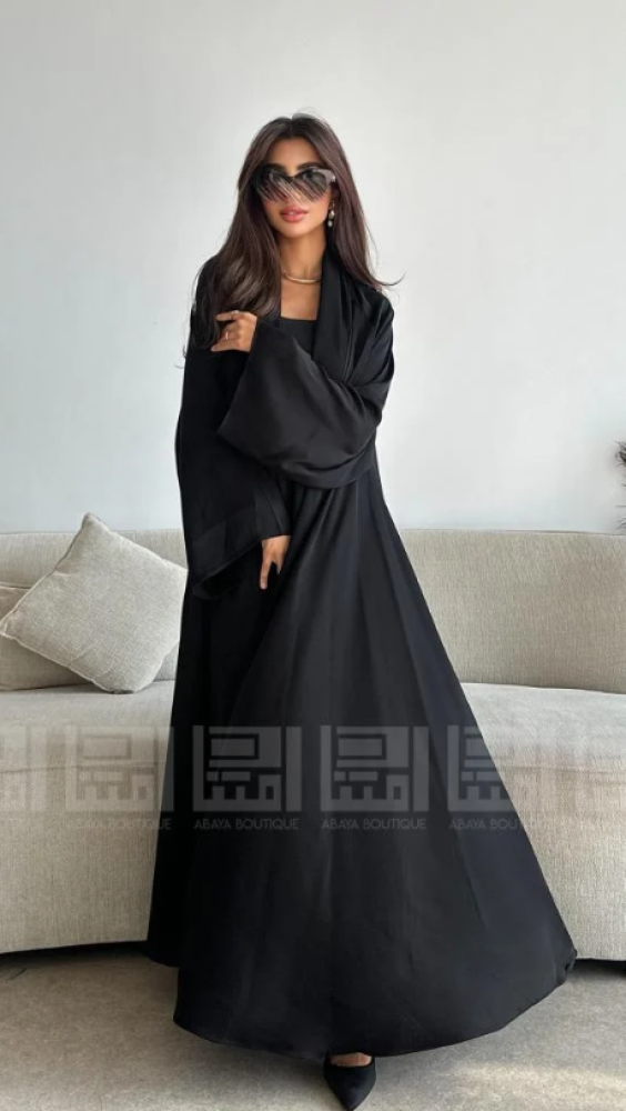 عباية حراير سوداء بقصة كلوش A Line واسعة وانسيابية.
