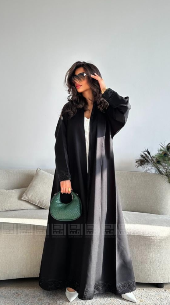مزينة بتطريز أنيق في الأكمام وأسفل العباية،