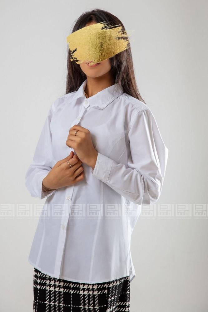 قميص ابيض بياقة رسمية و بازارير دائرية مناسب اسفل المريول المدرسي.