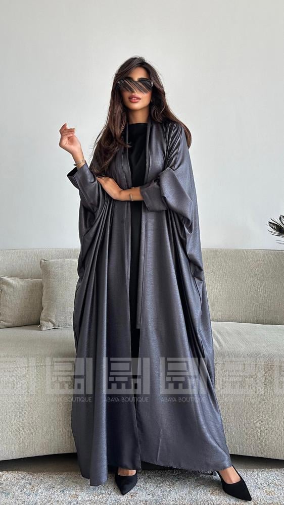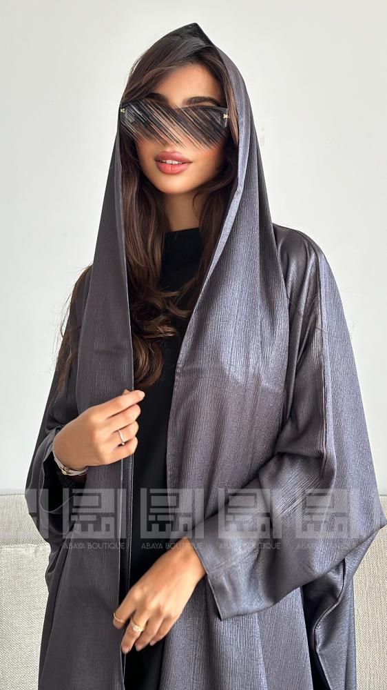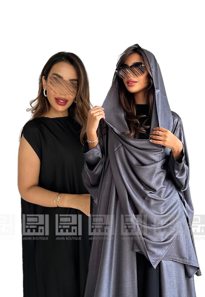 عباية سوداء دبل فيس بقصة البشت الوجه الاول فضي