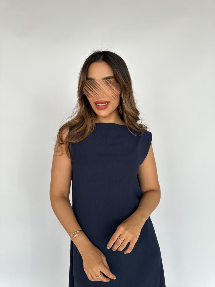 - فستان كحلي تحت العباية