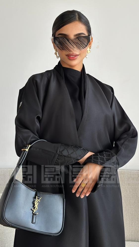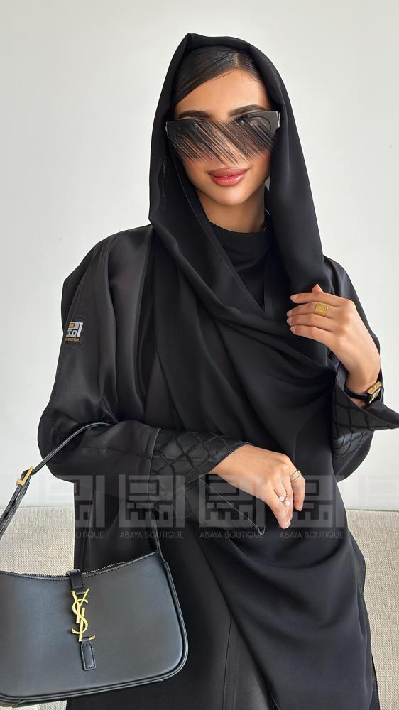 عباية سوداء بقماش تفتة الفاخر متميزة بتصميمها الأنيق والتي تصنع أيضًا من قماش التفتة الفاخر وتزين بقطعة جاكار فائقة الجودة على الأكمام. إذا كنت ترغب في الحصول على مظهر أنيق جدًا،