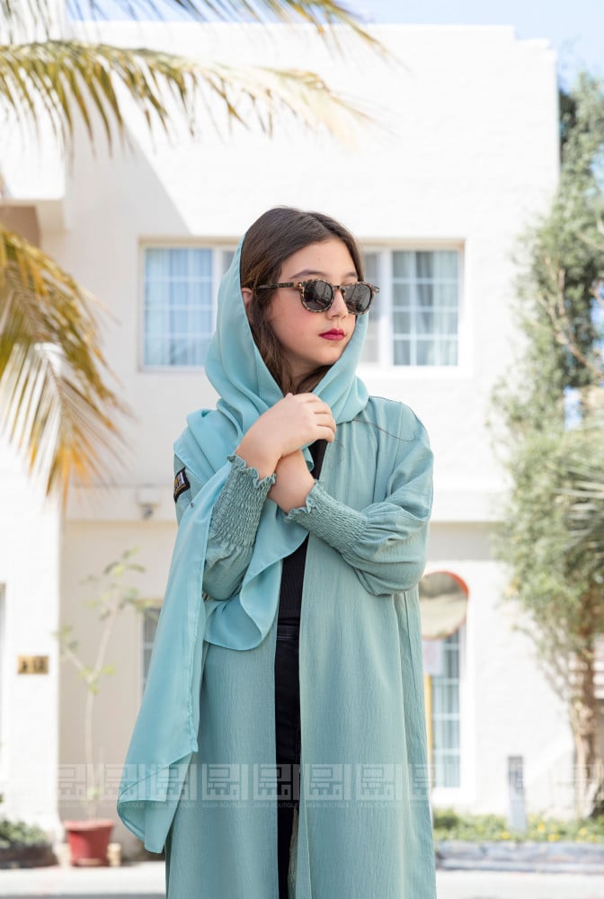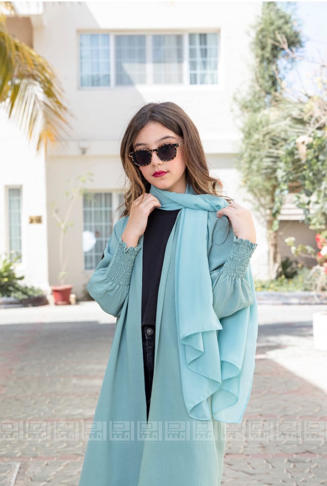 عباية بأكمام ستريش و باللون التيفاني المميز