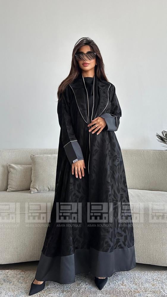 تتزين العباية بتفاصيل رائعة، حيث تأتي بياقة جاكيت مميزة مزينة بقيطان باللون البيج، مما يضيف لمسة من الأناقة والفخامة. الأكمام وأطراف العباية مصنوعة من قماش الميكادو البارد، مما يعزز من جاذبيتها. تصميم العباية يجعلها مثالية للمناسبات الرسمية أو اليومية، حيث يمكنك ارتداؤها بسهولة مع أي إكسسوارات.