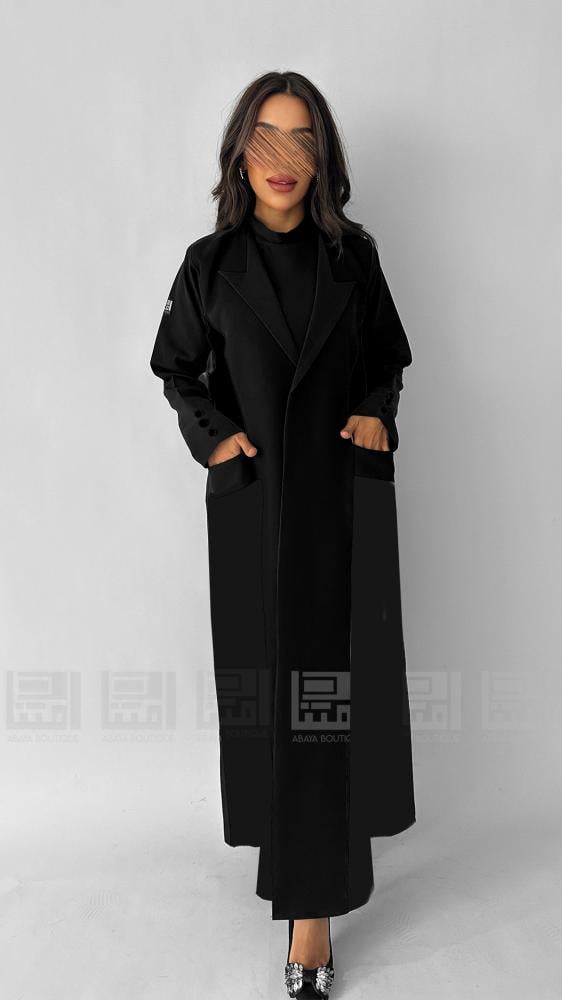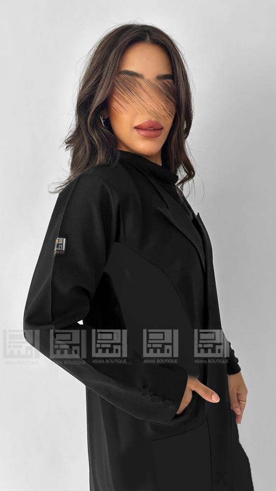 تتميز العباية بتفاصيلها العصرية، حيث تأتي بقصة ربع كلوش التي تمنحك حرية الحركة وتناسب مختلف الأجسام. الأزرار اللامعة الموجودة في الأكمام تضيف لمسة من الفخامة، بينما ياقة البليزر تضفي طابعاً رسمياً وأنيقاً. هذه العباية ليست مجرد قطعة ملابس، بل هي تعبير عن الذوق الرفيع.