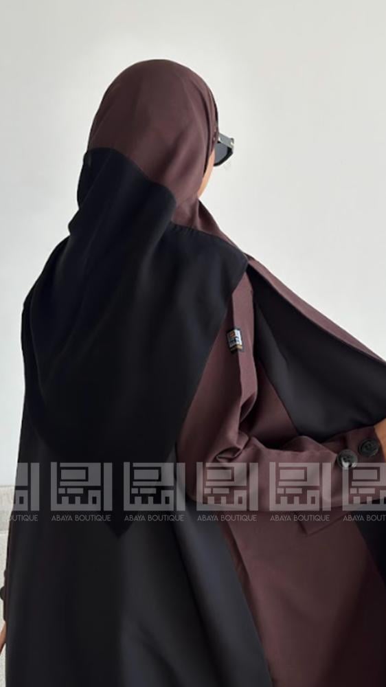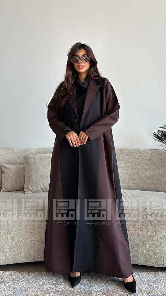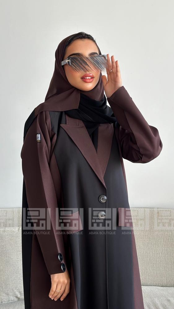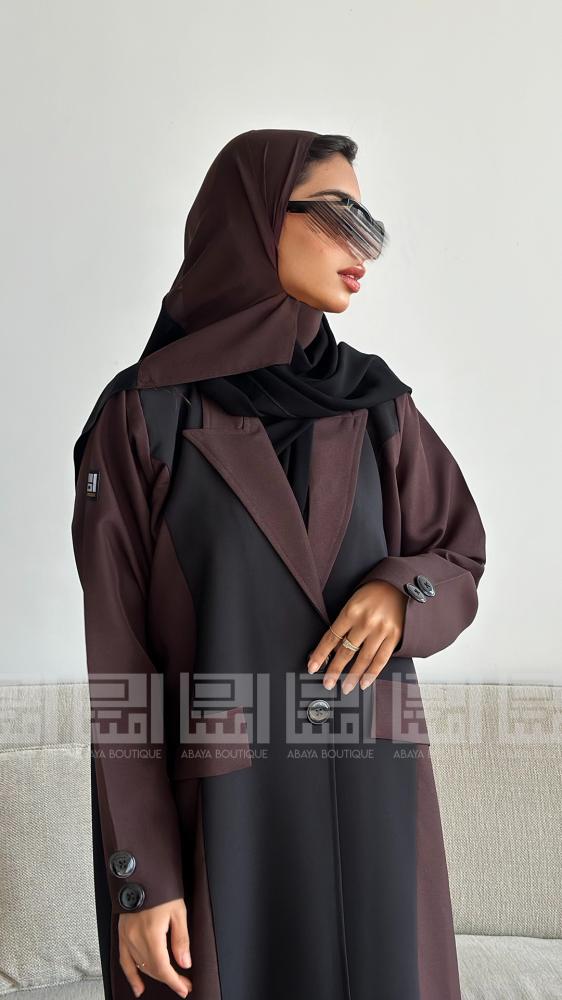 عباية سوداء بليزر بقماش ليمار  بتداخل لونين البني والاسود 1454