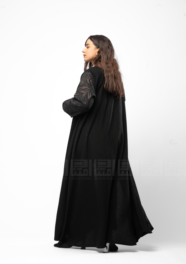 عباية كلوش باللون الأسود مصممة من قماش جاكار