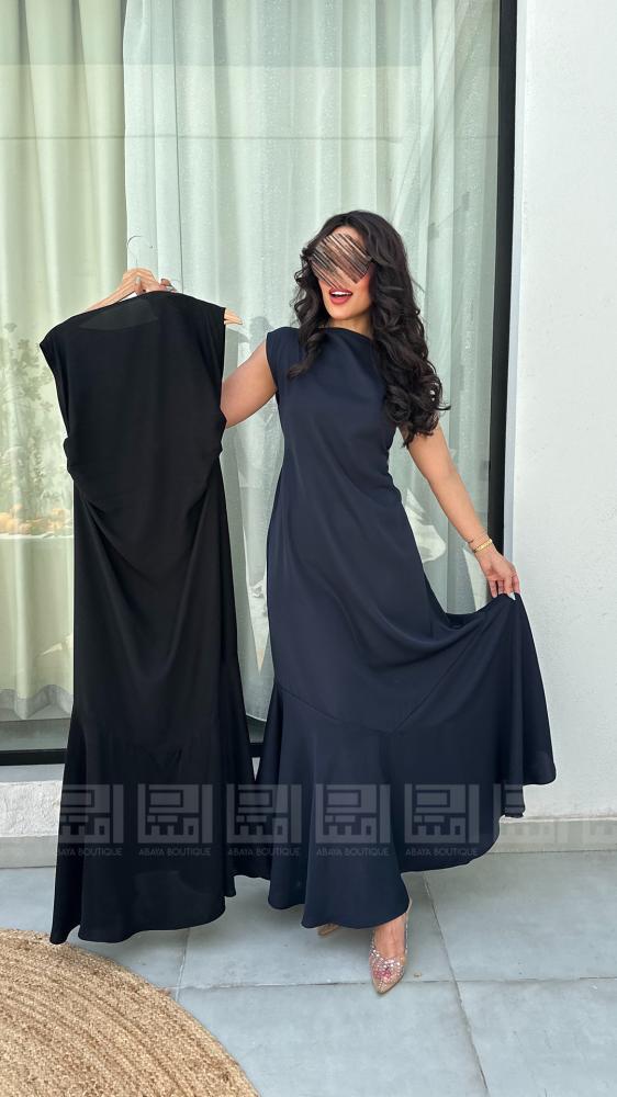 فستان عباية أسود واسع بكسرات ناعمة، بتفاصيل كسرات في الأعلى والأسفل تعطيه لمسة ناعمة ومميزة،