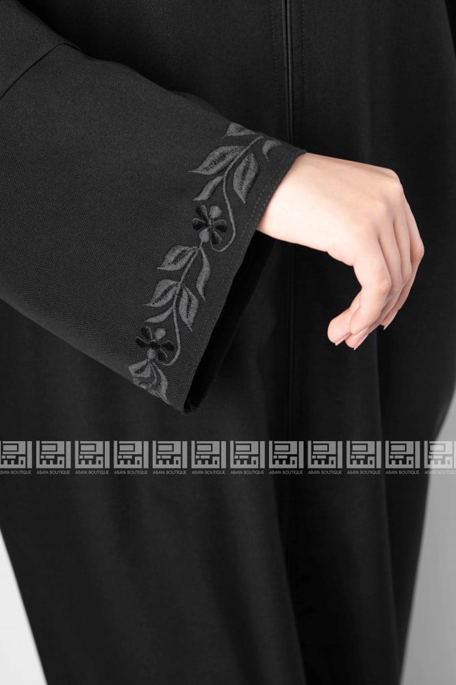 كم عباية اسود سواد فاحم مزين بتطريز من الورد باطراف الكم ليضفي لك لمسة من الأناقة والرقة