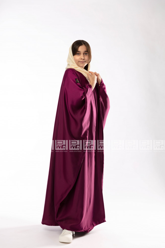 العباية مميزة بلونها الماروني وقماشها التفتة الحريري الملائم لأجواء الصيف الحارة