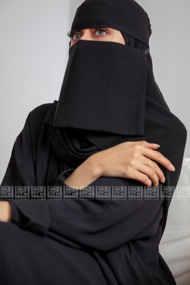 يتميز هذا النقاب بقصته القصيرة والعملية، مع سير مطاطي واحد يجعله سهل الارتداء وثابت على الوجه، ويتميز بقماش ناعم لطيفًا على البشرة، مما يجعله مثاليًا للارتداء اليومي.